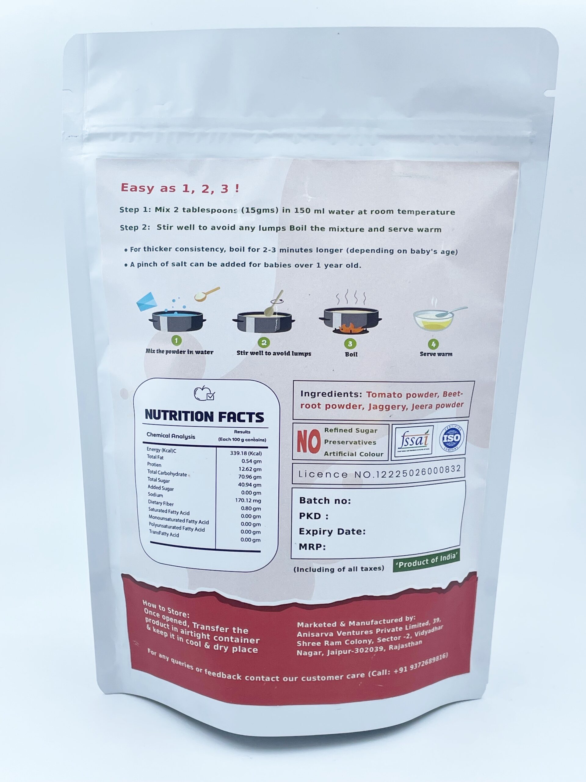 A vibrant, iron-rich blend of tomatoes and beetroot, packed with antioxidants and flavor.